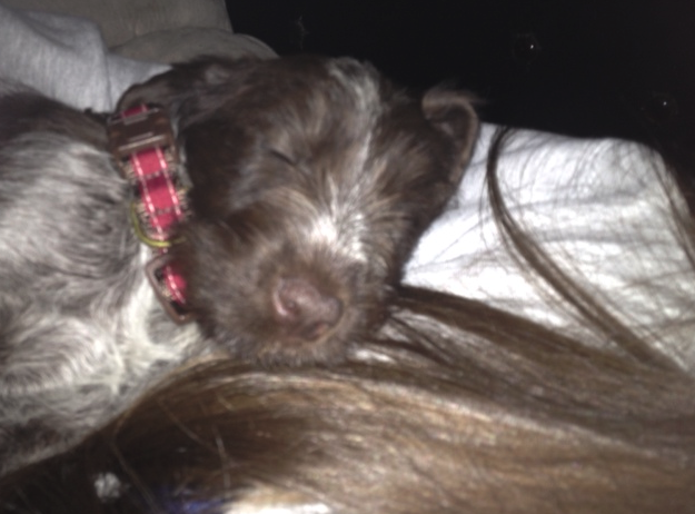 And back in my arms and asleep later in the night, so handsome. He is my little puppy prince!